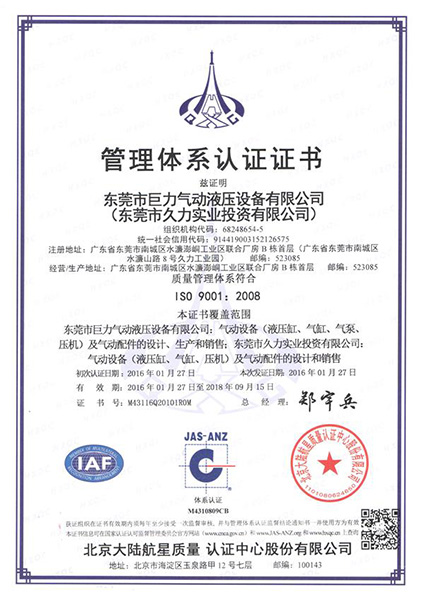 東莞市久力氣動(dòng)液壓設(shè)備有限公司 東莞市久力氣動(dòng)液壓設(shè)備有限公司是一家專(zhuān)業(yè)從事于:氣液增壓缸、氣液增壓器、CNC打刀缸、氣動(dòng)沖床及氣液增壓(液壓或伺服驅(qū)動(dòng))設(shè)備的專(zhuān)業(yè)性生產(chǎn)廠(chǎng)家!工廠(chǎng)在大陸地區(qū)始建廠(chǎng)于2006年3月,現(xiàn)始今在東莞工廠(chǎng)占地面積8000平方米左右,工廠(chǎng)及辦公面積3000平方左右,宿舍生活區(qū)在1000平方左右;工廠(chǎng)自有3臺(tái)CNC加工中心、3臺(tái)全自動(dòng)車(chē)銑復(fù)合機(jī)、6臺(tái)數(shù)控車(chē)床及普車(chē)普銑等設(shè)備一批;2014年公司因?yàn)榘l(fā)展需要在江西九江投資購(gòu)置40畝工業(yè)用地,正在建立新的工業(yè)園區(qū)!久持誠(chéng)信,力行共贏(yíng) 久力人始終堅(jiān)持“久持誠(chéng)信,力行共贏(yíng)”的座右銘,以產(chǎn)品質(zhì)量為已任,視產(chǎn)品質(zhì)量為企業(yè)生存發(fā)展的根本。努力在公司推行“零距離”概念和“共贏(yíng)”成果!久力堅(jiān)持對(duì)內(nèi):做到以對(duì)… 查看更多>>
